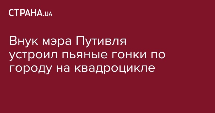 В Сумской области в скандальную историю попал 16-летний внук мэра Путивля Валерия Волкова, которого полиция задержала во время ночных гонок на квадроцикле. Юноша пребывал в состоянии алкогольного опьянения, передает Данкор.