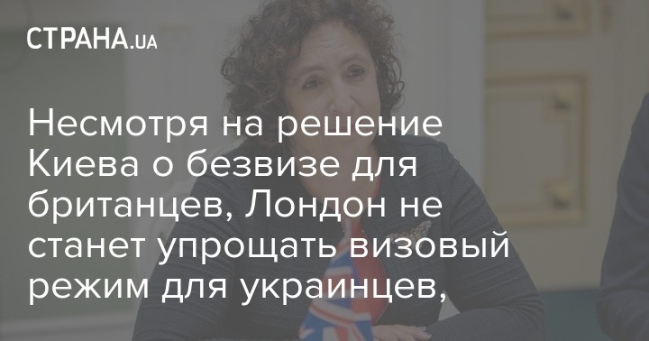 Несмотря на то, что президент Украины Владимир Зеленский предоставил подданным Британии временный безвизовый режим в связи с выходом страны из зоны ЕС, Великобритания не планирует отменять визовый режим для украинцев после Brexit. Не появится в ближайшее время в Украине и британского визового центра. Об этом сообщила посол Соединенного Королевства в Украине Мелинда Симмонс.