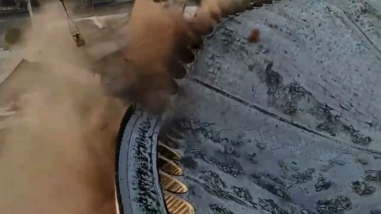 На кадрах видно, что разрушение комплекса началось после того, как один из рабочих отрезал часть металлического каркаса газовым инструментом. Когда крыша начала распадаться на секции и падать вниз, рабочий побежал в сторону люльки, в которой его ждал напарник. Разобрать, успел мужчина добраться до нее или нет, из-за качества видео невозможно. В момент работ к крыше спорткомлекса со стрел подъемных кранов были спущены как минимум две люльки.