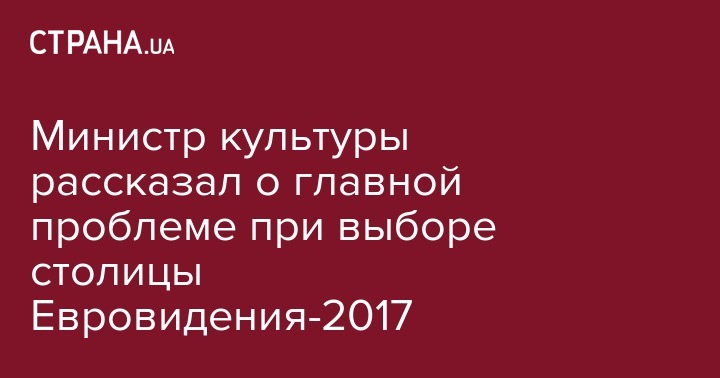 Вопрос выбора конкретной арены для проведения Евровидение-2017, на текущий момент, является "самой большой проблемой" в вопросе организации международного песенного конкурса. Такое убеждение, в телеэфире, выразил министр культуры Украины Евгений Нищук.