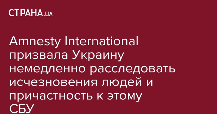 Amnesty International призвала Украину немедленно расследовать исчезновения людей и причастность к этому СБУ
