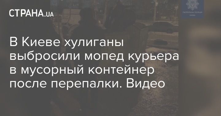 В Киеве хулиганы устроили перепалку с курьером одной из служб доставки, после чего один из них выбросили его мопед в мусорный контейнер.