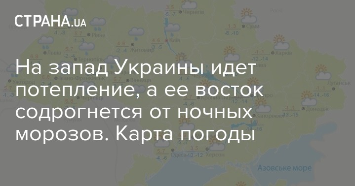 На запад Украины идет потепление, а ее восток содрогнется от ночных морозов. Карта погоды