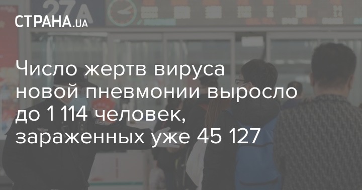 По состоянию на 00:00 часов по местному времени вторника, 11 февраля, (19:00 по Киеву - Ред.) число заболевших пневмонией, вызываемой коронавирусом Covid-19, составило 45 127 человек, смертельный исход зафиксирован в 1 114 случаях.