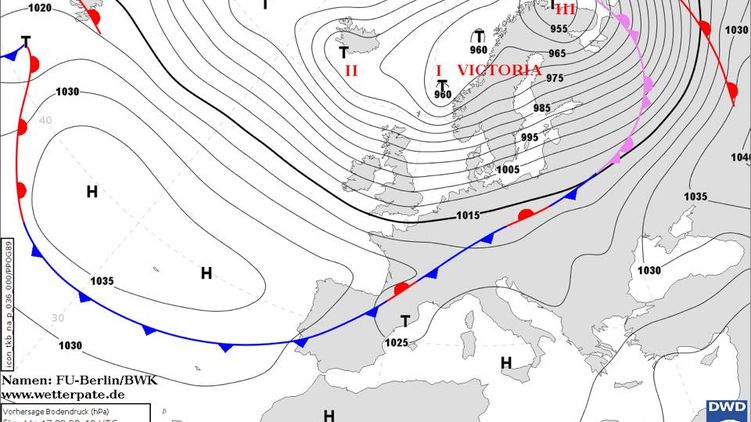 "Циклон Victoria с несколькими центрами, мощный и активный, не дает опомниться жителям западного побережья Европы, Великобритании, Нидерландам, Бельгии, странам Скандинавии, Балтии. Порывы - от сильного до ураганного ветра.
