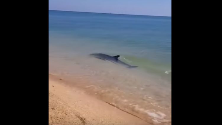 На Азовском море дельфины резвились всего в нескольких метрах от берега. Видео