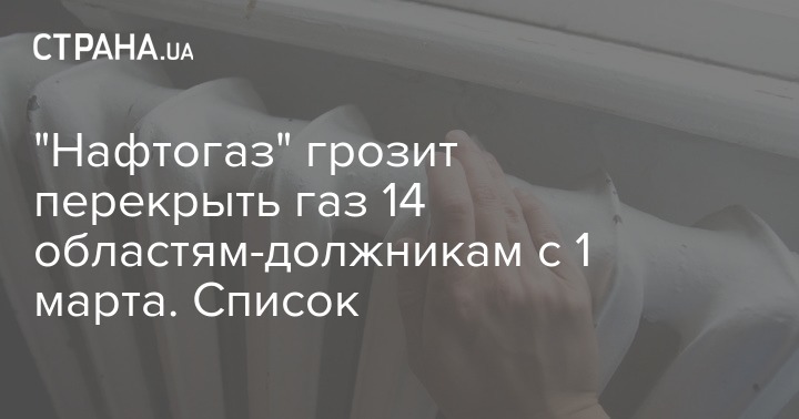 "Нафтогаз" с 1 марта может прекратить поставки голубого топлива в 14 областей Украины из-за долгов. В таком случае газовый кран перекроется для 52 теплопоставщиков, а объекты, которые они обслуживают, останутся без отопления. Об этом  сообщается на сайте "Нафтогаза".