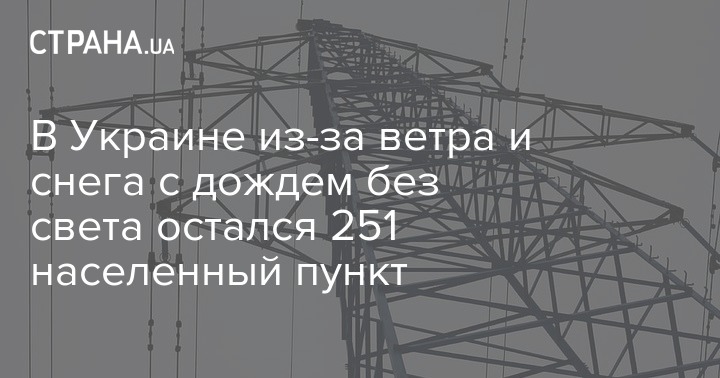 В Украине из-за ветра и снега с дождем без света остался 251 населенный пункт