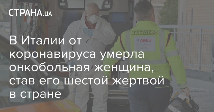 В Италии зафиксирован шестой случай смерти от болезни, вызванной китайским коронавирусом. Очередной жертвой стала женщина из Крема. Положительный тест на коронавирус она получила в воскресенье, а в понедельник скончалась. При этом уточняется, что женщина страдала онкологией, поэтому клиническая картина уже была нарушена. Об этом сообщает RAI.