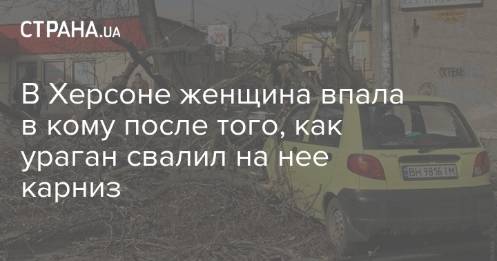 Из-за того, что в Херсоне прошел сильный ураган, пострадали не только здания и дороги, но и люди. Так, из-за ветра на женщину упал карниз. Она она впала в кому после удара.