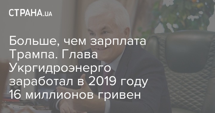 Больше, чем зарплата Трампа. Глава Укргидроэнерго заработал в 2019 году 16 миллионов гривен