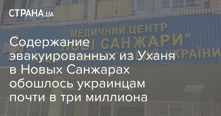 Содержание эвакуированных из Уханя в Новых Санжарах обошлось украинцам почти в три миллиона