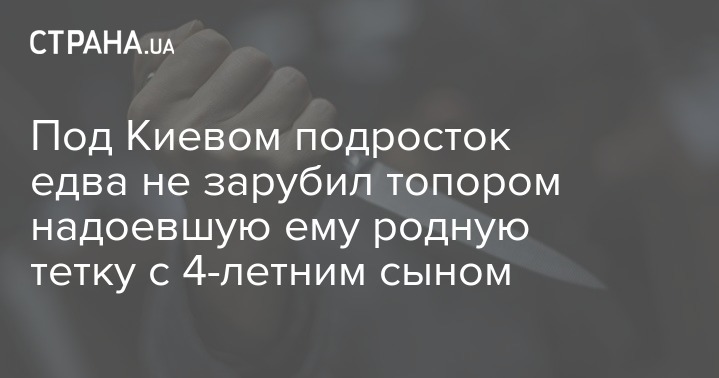 Покушение на убийство произошло в Киево-Святошинском районе. 14-летний парень, которому надоели поучения тети, ножом и топором нанес множественных ранений ей и своему двоюродному 4-летнему брату.