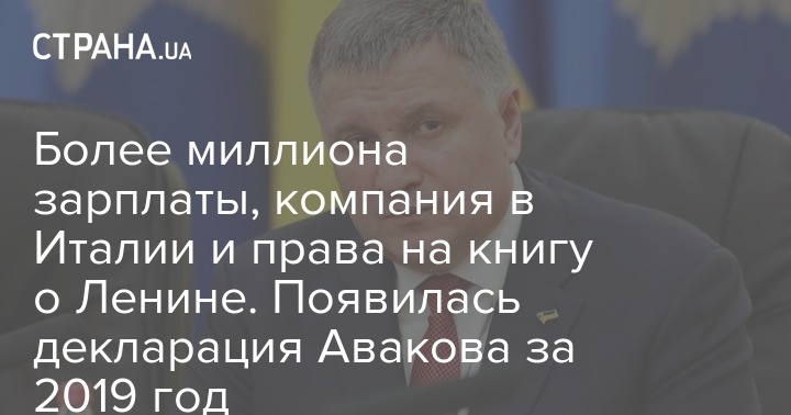 Более миллиона зарплаты, компания в Италии и права на книгу о Ленине. Появилась декларация Авакова за 2019 год