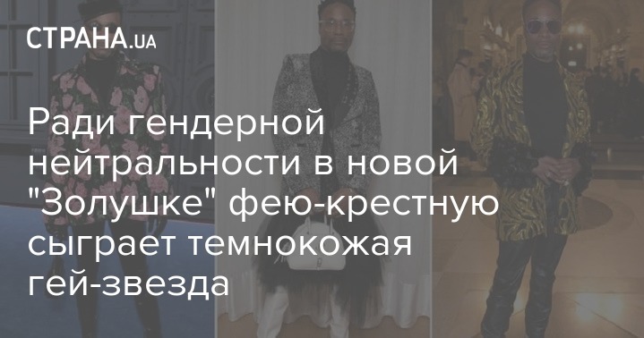 Актер Билли Портер рассказал, что сыграет фею-крестную в новом фильме "Золушка" студии Sony. Съемки фильма проходят в Лондоне. По словам Портера, его фея будет гендерно-нейтральной, потому что "у магии нет пола".