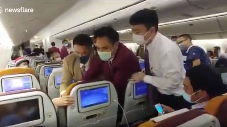 В аэропорту Шанхая пассажирка самолета авиакомпании Thai Airways сначала специально покашляла на стюардессу, а потом устроила драку с членами экипажа. Женщине не понравилось, что рейс задержат из-за проверки на коронавирус.