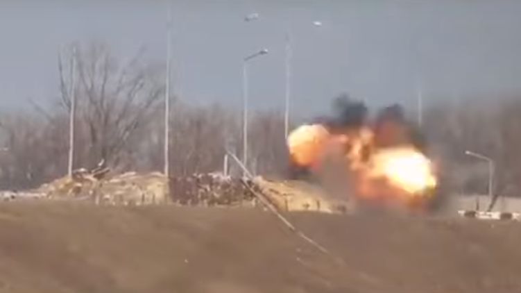В сети опубликовано видео, как сепаратисты обстреляли и уничтожили грузовой автомобиль ВСУ. Инцидент произошел в зоне ООС на Донбассе под Песками 8 марта. Противник вел огонь по украинским позициям из противотанкового ракетного комплекса "Фагот". При обстреле военного грузовика погиб украинский боец.