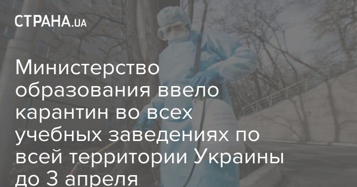 "Карантин продлится три недели - с 12 марта по 3 апреля 2020 года. Сроки карантина могут измениться в зависимости от эпидемиологической ситуации в Украине. Во время карантина ученикам и студентам запрещается посещать учебные заведения", - говорится в сообщении.
