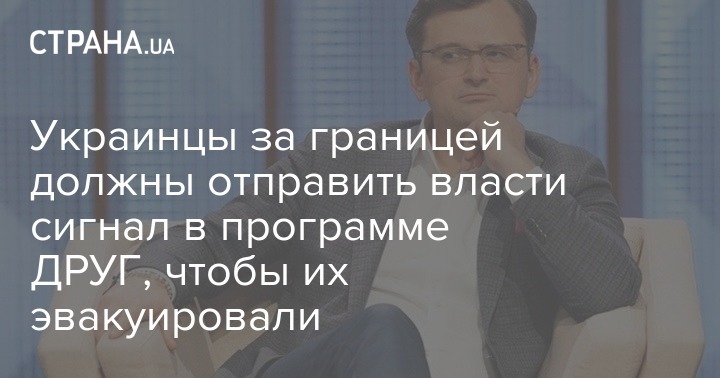 Министр иностранных дел Украины Дмитрий Кулеба призвал всех украинцев, которые находятся за границей и не смогут вернуться страну до 17 марта, регистрироваться в системе МИД Украины "ДРУГ". По его словам, это поможет людям и нашим дипломатам держать связь друг с другом и понимать где кто находится.