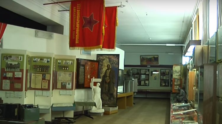 Боевые знамена Красной армии были изъяты из музея в 2018 году. Скриншот: YouTube/ krnews.ua