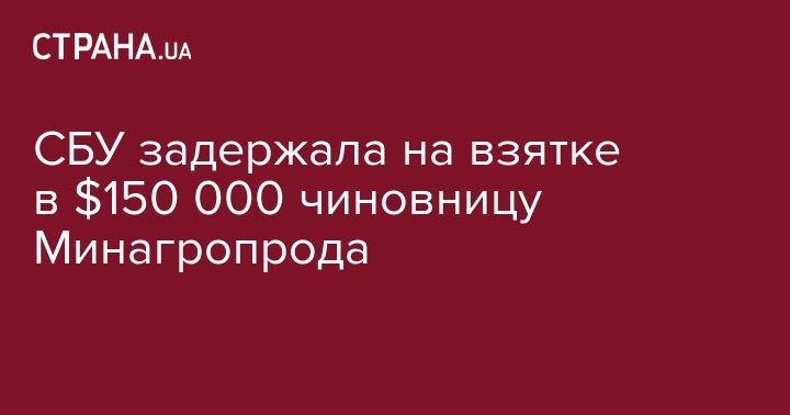 Сотрудники СБУ задержали чиновницу Министерства аграрной политики и продовольствия на взятке в $150 000, передает пресс-служба ведомства.