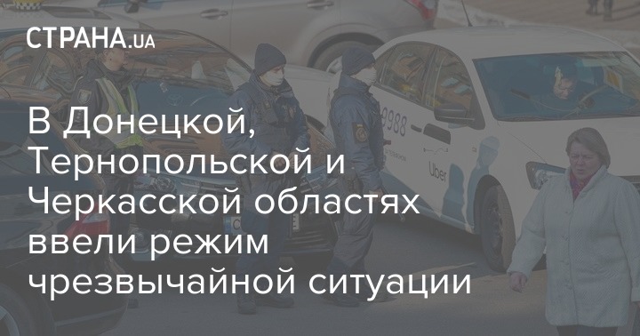 Кабинет министров ввел режим чрезвычайной ситуации в Донецкой, Тернопольской и Черкасской областях.