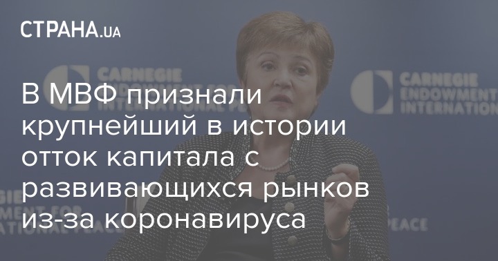По ее словам, 83 млрд долларов - это крупнейший когда-либо зарегистрированный отток капитала. Также Георгиева добавила, что для развивающихся стран и стран с низким уровнем доходов и большой долговой нагрузкой кризис станет особо серьезным испытанием, тогда как развитые экономики в целом встречают его достаточно подготовленными.