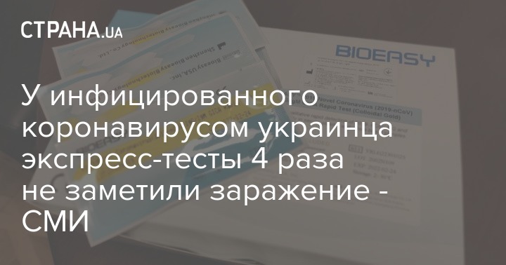 В Тернопольской области у второго инфицированного коронавирусом четыре экспресс-теста  показали негативный результат. Подтвердить болезнь у мужчины удалось только лабораторным путем. Об этом пишет издание Думай.
