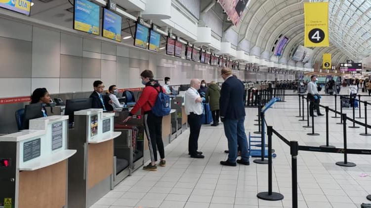 Украинцы на посадке в аэропорту Торонто, фото: facebook.com/UkraineInCanada