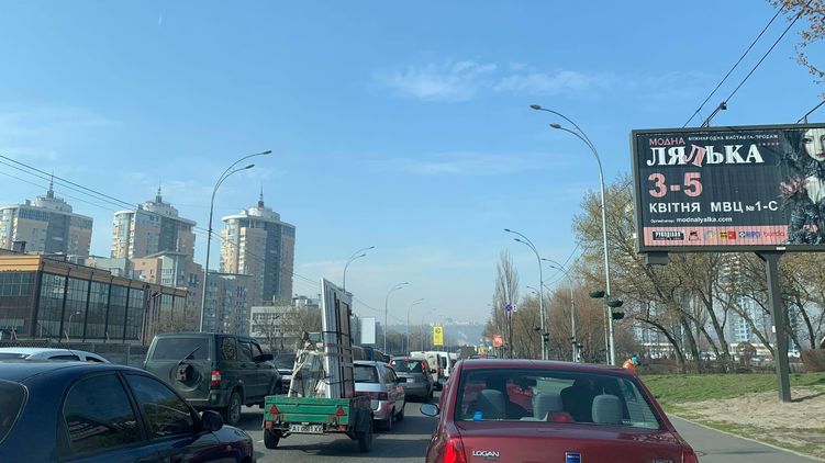 Перед мостом Метро в Киеве образовалась большая пробка. Фото: Страна.ua
