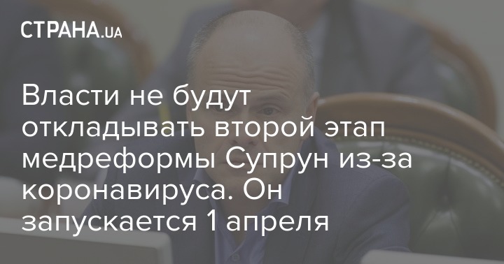 В Украине начнется второй этап медицинской реформы с 1 апреля, независимо от эпидемии коронавируса.