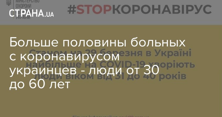 Больше половины больных с коронавирусом украинцев - люди от 30 до 60 лет