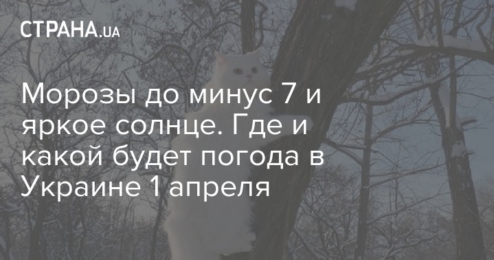 Первый день апреля в Украине ожидается солнечным и без осадков. Ночью ожидаются морозы до 7 градусов. Холоднее всего будет в западных областях страны. Морозы охватят всю территорию Украины, ожидается -2...-7 градусов, в Карпатах температура может опуститься до -12 градусов мороза.