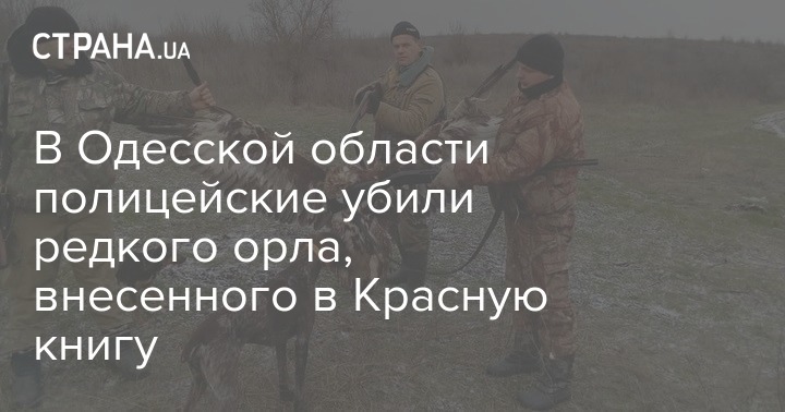 В Одессе полицейские открыли служебное расследование по факту убийства орла, занесенного в Красную книгу сотрудниками правоохранительных органов после того, как в интернете одесский активист Демьян Ганул опубликовал фото мужчин в камуфляжной форме, которые держат за крылья мертвую птицу, занесенную в Красную книгу.