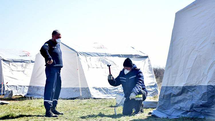 Спасатели начали строить палаточные городки для зараженных коронавирусом украинцев. Фото: ГСЧС
