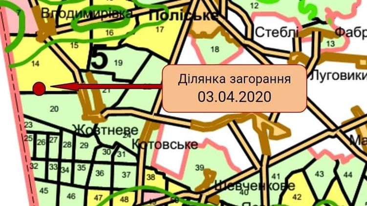 Очаг возгорания на карте. Фото: Facebook/ dazv.gov.ua