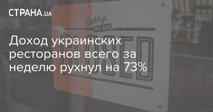 Объем продаж заведений общепита в Украине с 23 по 29 марта упал в среднем на 73% по сравнению с аналогичным периодом из-за карантина.