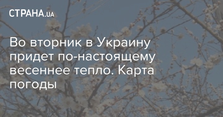 Во вторник в Украину придет по-настоящему весеннее тепло. Карта погоды