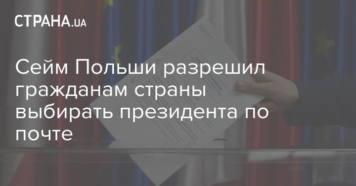 Сейм Польши поддержал законопроект правящей партии "Право и справедливость" о заочном голосовании на президентских выборах в этом году. Граждане будут отправлять свой голос по почте.