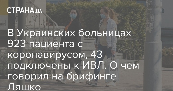 По состоянию на 10 апреля в больницах Украины находятся 923 пациента с коронавирусом, 43 из них подключены к аппаратам искусственной вентиляции легких.