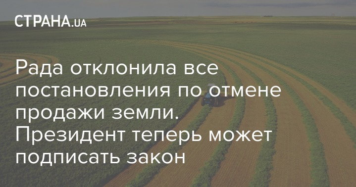 Рада отклонила все постановления по отмене продажи земли. Президент теперь может подписать закон
