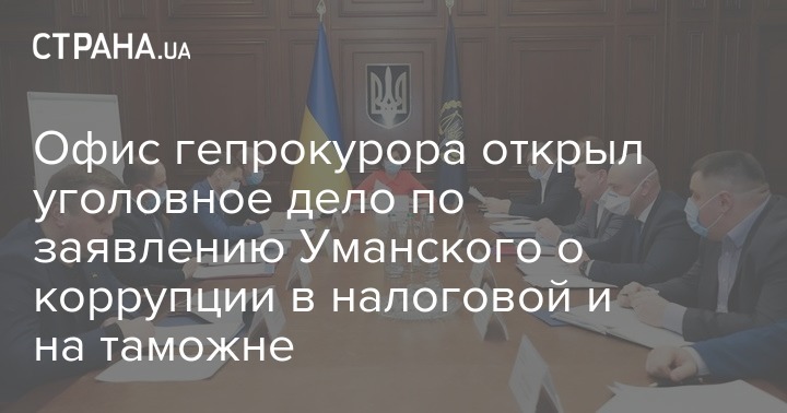 Офис генерального прокурора открыл уголовное производство по заявлению бывшего министра финансов Игоря Уманского. В заявлении он сообщает о коррупции в налоговых и таможенных органах.
