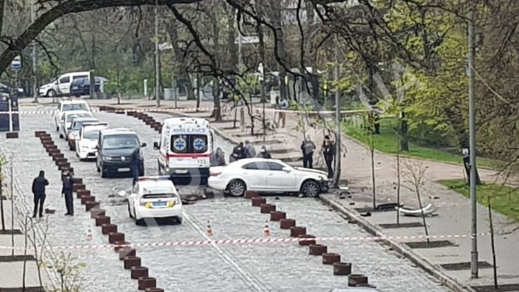 Также на Институтской стоял бус, в котором находились люди в форме с надписью СБУ. Потом водитель Lexus LS 460 не справился с управлением и врезался в столб. К машине подбежали полицейские и сбушники. Водителя - мужчину лет 45 в костюме, уложили на землю.