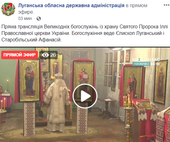 0:55 Луганская ОГА транслирует богослужение в ПЦУ, хотя абсолютное большинство прихожан в регионе - из УПЦ.