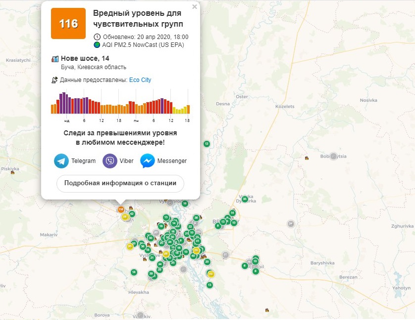 По состоянию на вечер 20 апреля качество воздуха в Киеве и Харькове восстановилось до приемлемых значений.