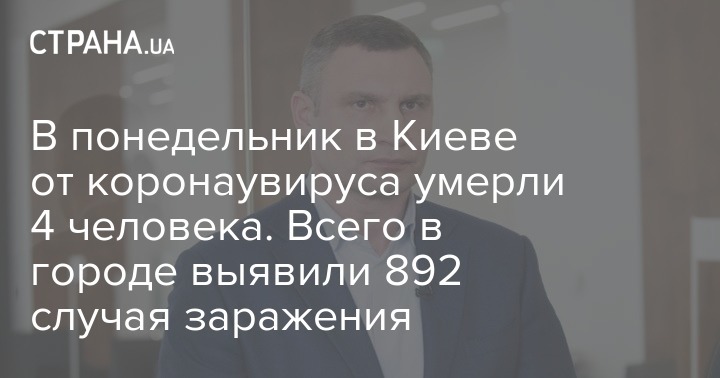 В понедельник в Киеве от коронаувируса умерли 4 человека. Всего в городе выявили 892 случая заражения