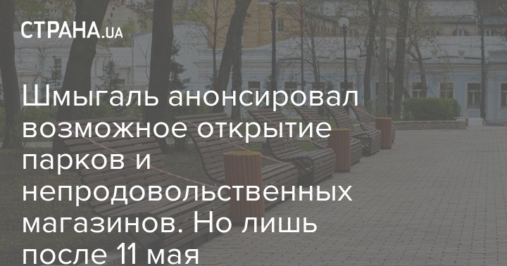 "Если ситуация будет содействовать, то 11 мая мы сможем говорить об открытии парков и скверов, учреждений торговли непродовольственными товарами, части объектов бытовых услуг и, возможно, о других смягчительных мерах", - сказал Шмыгаль на заседании правительства в среду.