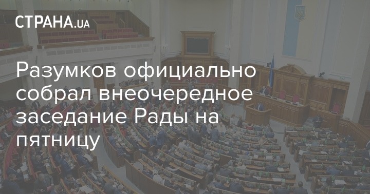 Председатель Верховной Рады Дмитрий Разумков подписал распоряжение о созыве внеочередного пленарного заседания парламента по инициативе президента Украины Владимира Зеленского. Оно состоится в пятницу, 24 апреля в 13:00.