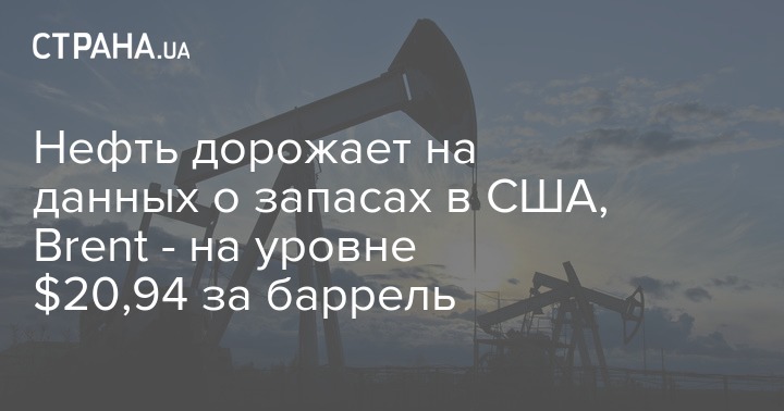 В среду, 22 апреля, цены на нефть эталонных марок показали уверенный рос на торгах после публикации данных Минэнерго США о запасах в стране. Стоимость июньских фьючерсов на Brent на лондонской бирже ICE Futures к 17:37 по Киеву составляет $20,94 за баррель, что на $1,61 (8,33%) выше цены на закрытие предыдущей сессии.