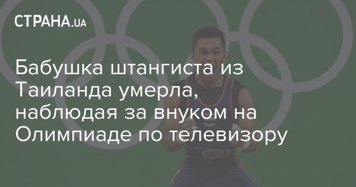 Вчера, 7 августа, бабушка штангиста из Таиланда Синпхета Круаитонга, который стал бронзовым призером Олимпиады в Рио-де - Жанейро в весовой категории до 56 килограммов, умерла, наблюдая по телевизору за соревнованиями с участием внука. Об этом сообщает The Phuket News.